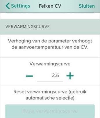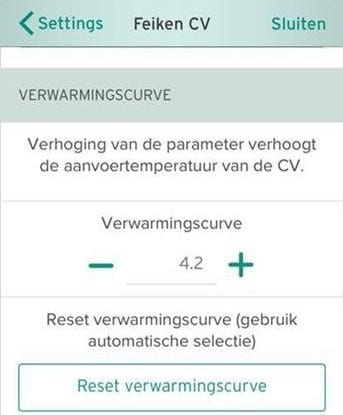 Indien u een v-Smart thermostaat heeft kan het voor komen dat de woning niet goed opwarmt. De meest voorkomende oorzaak hiervoor is de verwarmingscurve die in de App staat ingesteld.