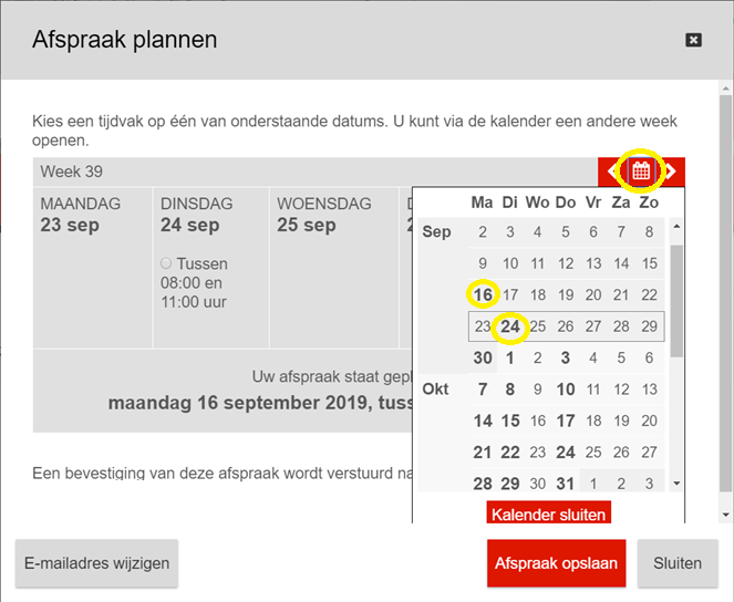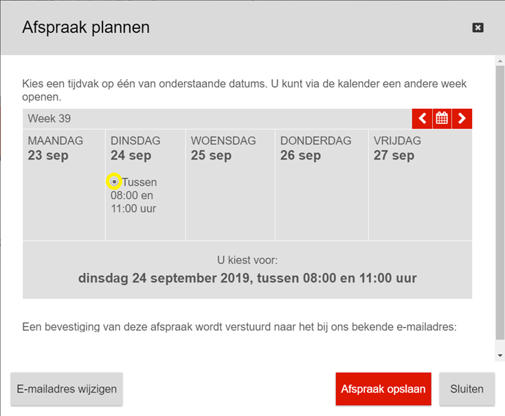 - Klik op Afspraak opslaan. U ontvangt per e-mail een bevestiging van de afspraak.